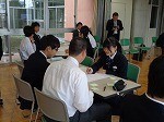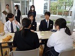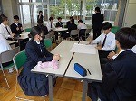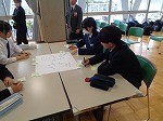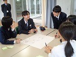 「平和」について、他校の生徒と意見交流をしながら、平和のイメージを広げるとともに、その実現のために何ができるかを考える生徒たちです。積極的に話し合う姿がたくさん見られたコミュニティスペースです。