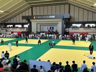 アルテンジャパン武道館て実施されている柔道競技の部。その個人戦に出場している本校の生徒たちです。力強く技を出して、勝利を目指しています。応援、よろしくお願いします!
