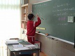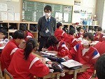 三角形の相似条件に合わせて作図に取り組む生徒たち。三角定規とコンパスを使って、丁寧に作業を進めていました。代表の生徒は、黒板に作図。大きなコンパスもうまく使いながら頑張っています!