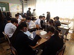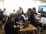 ALTの先生の友達に、日本の観光地の案内をするという目的をもち、英語でどうのように表現するか考える生徒たち。友達と意見を交流させながら、これまでの学習を生かして活動を進める生徒たちです!