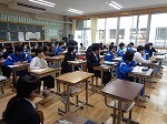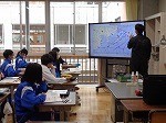 電子黒板に映し出された「天気図」をもとに、その見方や気象の状況などについて、イメージを広げていました。等圧線の様子、ヘクトパスカル、高気圧と低気圧・・・などに着目して学習を進める生徒たち。気象予報へのイメージを広げていました。