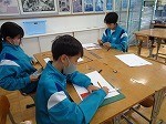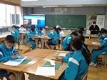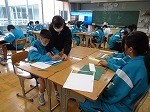 今日は、自分で制作をしてきた「飲み物のラベル」を切り取る作業を進めています。課題は「作品を美しく切り抜くにはカッターをどう使うか」です。カッターを上手に使って、自分の作品をていねいに切り抜いている1年生の生徒たちです!