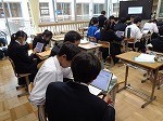 おとなりの社会科の授業でも、2年生の生徒たちがよく意見を交流させていました。今日の社会科のテーマは「近畿地方ではなぜ、都市や農村の姿が変化したのか」を追究していきます。単元を通して、この課題を追究していきます。資料をよく活用しながら、課題の解決を今日も目指す生徒たちです!