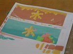 飲料水のラベルづくりの作業を進める生徒たち。飲み物の味や温度などのイメージを広げ、それを表現する生徒たち。すてきな生徒たちの作品に今日も目を奪われてしまいました。ブルーベリー味に、ハチミツ味に、シュワシュワする飲み物に・・・。ラベルを見るだけでイメージが膨らみます!