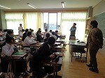 「発展途上国の子どもたちが抱える問題について考える」ことをテーマに学習を進める生徒たち。その過程で、「If I were ~」を使って、「~であれば~だろうに」の表現を活用する活動を行っていました。担当の先生と生徒たちが、英語でテーマに関する内容をやりとりしたり、電子黒板を使って単語の意味を確認したり、生き生きと活動の取り組む姿が見られていました!
