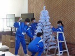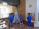 中央公民館での職場体験に取り組む生徒たち。クリスマスに向けて、飾り付けを行っていました。地域の皆様が集まり活用するところです。訪れた方がほっとした気持ちになるように、飾り付けをていねいに行っていました!