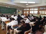 「物の見え方」について学習を進める生徒たち。「何で物は見えるの?」「何で赤色に見えるの?」・・・などの疑問について、その解決を目指していました。光の反射による物だということに気付き、ていねいのノートにイラストをかきながら、イメージを広げていました!