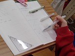 「平行線を使った証明を考えよう」というテーマのもと、学習を進める生徒たち。ノートに描いた図に、平行な線を意識しながら、合同な図形かどうか条件を確認していました。図形に、色を変えながら描き込み、問題の解決を目指していました。