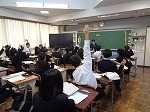 これまで学習を進めてきた「竹取物語」について、生徒一人一人が「問題づくり」をして、その問題をクラスのみんなに伝えている場面でした。よく友達の話を聞き、積極的に答える生徒たちです。みんなで学習に取り組む雰囲気、とってもいいですね!