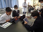 「天気図からどんなことが予測できるだろうか」というテーマのもと、学習に取り組む生徒たち。1人1人が予想を立て、今日の学習内容へ進んでいきました。一人一人の予想が書き込んだものが電子黒板にも反映され、生徒たち1人1人の考えが広がっていきます。写真は、グループで共通して予測する天気図をもとに、その状況を考えている様子です!