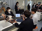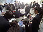 天気図をもとにグループで予測した天気の状況を他のグループの友達にも紹介します。これまでのの学習を活かし、低気圧に高気圧、等圧線などの言葉を活用し、生徒たちらしいユニークな考えをたくさん出していました。(洗濯をするなら・・・。今、旅行に行くなら・・・。など)友達に説明をする時には、しっかりタブレットを見せながら。生徒たちの素敵な姿がたくさん見られる理科室です!