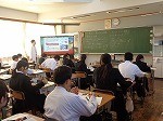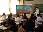 「物が見えるとき、光はどのように進んでいくのか」をテーマに学習を進める生徒たち。「トマト」が赤く見えることについて、ノートに光の進み方を図にまとめながら、イメージを広げていました。「反射」がキーワードになるようです。画像や担当の先生の話を聞きながら、考えを広げる生徒たちです!