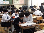 これまでの学習を活用し、様々な問題の解決にチャレンジする1年生。今日は「いろいろな移動を使って図形を描く」ことを目標としています。何とか解決しようと友達と一緒に粘り強く考える姿、できた図形を担当の先生に進んで見せに行く姿・・・など、積極的に学習に取り組む1年生の生徒たちです!