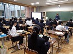 教室を訪ねたときは、「気象」という言葉から、生徒一人一人がウエビングマップづくりにチャレンジしているところでした。生徒たちがつくりあげたマップを見ると、たくさんの用語か書かれ折り、今日へのイメージが広がったことが分かります。この後、テストの返却になるようです。テストも振り返り、しっかり学習内容を身に付けていってほしいです。