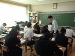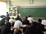 「市場経済において、価格は同決まるのか」 をテーマに学習を進める生徒たち。需要と供給の曲線のイメージが広がったところで、資料をもとに、需要と供給の曲線をつくりあげ、均衡価格を求めていました。実際に経済の仕組みを体感していました。