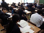 教材文「矛盾」を読み進めていました。教室を訪ねた時は、原文を書き下した文章を読みながら、難解な語句調べを進めていました。資料をよく読み「矛盾」の文章を理解していこうとする生徒たち。集中して取り組む姿がたくさん見られました!