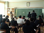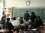 「用言の活用の復習」をテーマに学習に取り組む3年生。黒板に書かれた五段活用・上一段活用・下一段活用・・・のどれに当てはまるか、順番に黒板に来て記入をしていく生徒たち。用語の活用の復習をクラス全体で取り組んでいる姿が印象的でした!