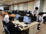 「守谷中の体育祭をプレゼンテーションソフトを活用して発信する」ことを目標に、作品の作成をすすめる生徒たち。迫力のある写真を活用し、そこに生徒たち自身の言葉を加えながら、素敵なプレゼンテーションのスライドをつくっていました。一人一人、コンピュータ室のパソコンに向き合い、頑張っています!