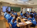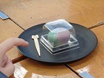 「生菓子の鑑賞」をテーマに学習を進める生徒たち。本物の生菓子を見ながら、学習内容を深めていました。どのようなテクニックでつくられていたり、どんな文様が描かれていたりするのか、生徒たちは、様々な本物の和菓子を見ながら、イメージを膨らませていました。