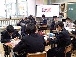 学習してきたことを活かし、友達の名前を当てるクイズづくりにチャレンジする生徒たち。「as ○○ as ・・・」や比較級などの文法表現を使って、英文づくりを進めていました。グループの友達とよく考えを交流させながら、学習を進める2年生の生徒たちです!