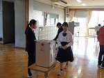 生徒会役員選挙の投票の様子です。一人一人、投票用紙を受け取り、必要なことを記入し、投票箱に投票。実際の投票と同様のやり方で実施しています!(投票する生徒も、大切な1票として捉えて、真剣に取り組んでいます!)