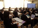 「説得力のある根拠とはどのようなものか」をテーマに学習を進めていました。写真をもとにした記事を読み、タブレットを活用した「原稿用紙」に自分の考えを打ち込む生徒たち。よく考えながら、自分の考えを表現していました!