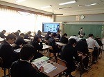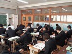 「書写」に取り組んでいました。今日のテーマは「行書」で書くことにチャレンジすることです。速くなめらかに書く行書ですが、なかなかお手本通りに書くのは難しいようです。ですが、よりていねいに書き上げようと頑張っている生徒たちの姿を見ることができました。