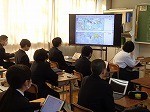 16世紀と19世紀の世界地図を見比べ、共通点や相違点について気付いたことを全体で交流する生徒たち。前面黒板に、気付いたことを生徒たちが書いている場面でした。このあと、「大航海時代」や「アメリカ大陸の植民地化」について学習していきます。自分たちが資料から見つけ出した疑問点などを解決していってほしいです!