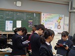 「好きな有名人やあこがれの人について、相手に分かりやすく伝えるために」というテーマで学習を進めていました。「What dose she do?」「How old are you?」などの質問を通して、英語で情報を集め人物へのイメージを広げる生徒たち。生徒どうしの英語でのコミュニケーションが活発に行われる1年生教室です!
