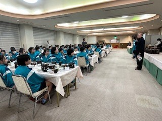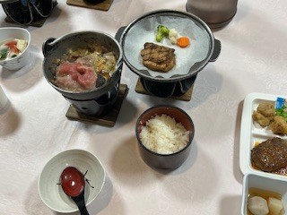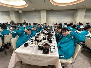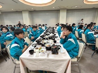 1日目の夕食の様子です。美味しくたくさんいただいて、明日に備えます。みんなそろって、いただきます!