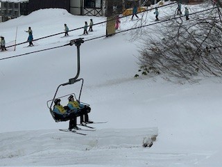 スキーに初挑戦の生徒たちも、リフトに乗って、上から滑っています!頑張っています!