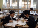 「走れメロス」の全文を机の上に置き、読み取りを進めていました。グループの友達と意見交換をしながら、文章に書き込みをする生徒たち。積極的に意見を出し合う雰囲気、とてもいいですね!