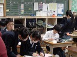今日は2年生は「学年末テスト」です。テスト前の確認を友達としたり、自分で資料を振り返ったりして、朝の時間を過ごしていました。担任の先生からも「頑張ろう!」という励ましの言葉をもらい、今日の5教科のテストに臨む2年生です!
