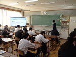 「いろいろな確率」をテーマに学習を進める2年生。今日は、AからDの4人から2人を選び、さらにC・Dが選ばれる確率を求めていきます。これまで学習してきた樹形図をもとに考えを広げる生徒たち。「A・BとB・Aは同じだ。では、どうすればよいか。」について、熱心に考える姿が見られていました。根気強く考える姿がたくさん見られる2年生です!