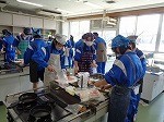 調理実習が今日も行われる調理室。「しょうが焼き」づくりに、グループで力を合わせ取り組んでいました。しょうがのすりおろし、お肉の準備、調味料の確認・・・など、生徒たちはてきぱきと作業を進めています。担当の先生からの事前の注意事項などの話をしっかり聞き、今日も進んで活動に取り組む生徒たちです。