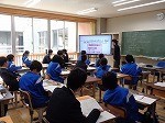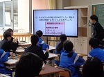 「富国強兵と文明開化」についてイメージを広げる生徒たち。教室を訪ねたときは、明治政府の鉄道技術者として、日本の鉄道に礎を築いた外国の人物の話が提示されていました。当時の富国強兵を進める政策の1つであり、生徒たちのイメージを広げるきっかけとなっていました。