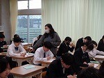「卒業前特別授業」として、卒業生合唱曲の歌詞の内容を読み取る授業を進めていました。歌詞全文が載るワークシートをもとに、使われている表現技法のほか、最も印象に残るところなど・・・生徒たちは、自分たちの歌う合唱曲へのイメージを膨らませていました。卒業式当日、卒業生としての思いを込めた素晴らしい合唱になるだろうと感じる瞬間でした。