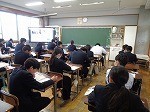 江戸時代末期の歴史の学習を進める生徒たち。教室を訪ねたときは、ちょうど、ペリー来航時の様子を表した「狂歌」をもとに、当時の人々の思いを想像している場面でした。黒船が突然あらわれたときの人々の思いをワークシートに書き込みながら、想像を膨らませる生徒たちです!
