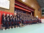 卒業生の合唱です!中学校生活の思いを込め、全員で素晴らしい歌声を響かせてくれていました。合唱が終わると、いよいよ退場。守谷中学校を巣立っていく生徒たちです!