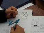 「平面図形」や「比例・反比例」のまとめの問題にチャレンジする生徒たち。図形の問題では、コンパスをていねいに使って、問題の解決を目指す姿が印象的でした。1年間の振り返りを通して、学習の定着を図っていってほしいと思っています!