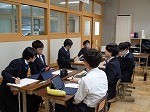 担当の先生が提示した「車が難題も積み上がっている写真」について、それをどのように英語で表現するか考える生徒たち。様々な英単語がグループ内で話し合われていました。これまでの学習を活かしながら、英語での表現に取り組む生徒たちです!
