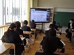 1日のスタートの始まりに、学年主任の先生から「2年生の生活」についての話がありました。中堅学年として、昨年度の振り返りをするとともに、これから何が必要かについて、具体的な話を聞く生徒たち。オンラインでの集会ですが、集中して電子黒板を見る生徒たちの姿が見られました。