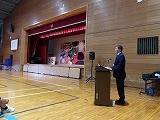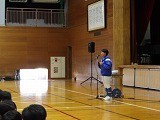 まず始めに、生徒会の代表から、守谷中学校の生活の様子や行事の紹介がありました。