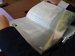 谷川俊太郎「未来へ」の詩の音読に取り組む生徒たち。2年生の国語科の教科書を最初の1ページを開き、みんなで声を出しながら読み進めていました。これまでの学習を活かし、詩の構成などについても気付いたことを話し合っていました。