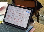 漢字の「小テスト」からスタートさせていました。おとなりの友達と漢字が正しくかけているかお互いにチェック。タブレットに映し出された模範解答を確認しながら、ていねいに活動を進めていました。