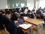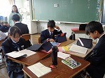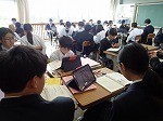 朗読にチャレンジ中でした。教科書の文章に、「強く読むところ」「ゆっくり読むところ」・・・など、線で書き込んだ文章を朗読する生徒たち。タブレットの録音機能などを活用して、テーマに迫る生徒たち。