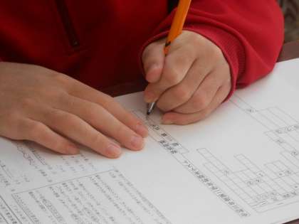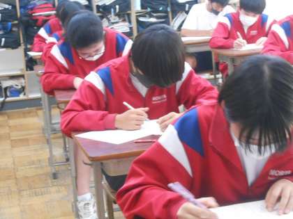 国語のテストの時間です。見直しで、数点稼げることがよくあります。一端終わった後の見直しは必須です。