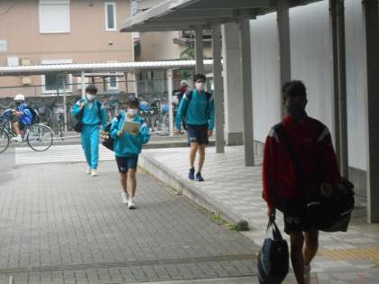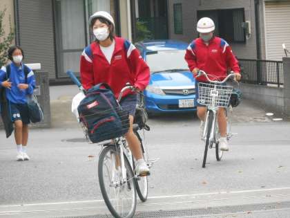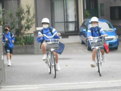 曇り空の朝となった今日、登校はいつもと変わらない落ち着いた登校風景です。