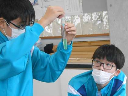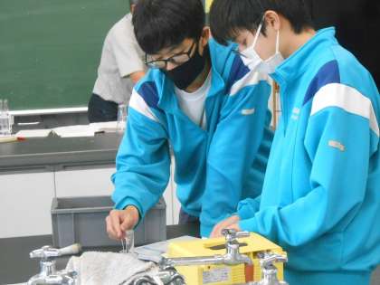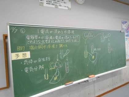 3年理科 電解質の水溶液中に電流を流したときの化学反応 公開日 2021/10/07 更新日 2021/10/07 生徒たちの活動 電解質の水溶液中に電流が流れたときの化学反応を塩化銅で調べる実験を行いました。 陽極、陰極の2極のいずれかの反応を見て、茶色い物質が付着していることが観察できました。