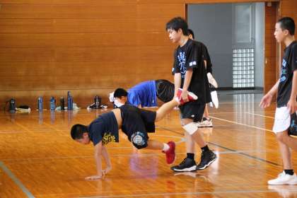 男子バスケット 土曜日の練習 公開日 2021/10/09 更新日 2021/10/09 生徒たちの活動 練習がなかった時期が長かったせいか筋力も以前に戻ってしまったようで、今日は体幹や脚力などのレーニングを交えた練習も行いました。